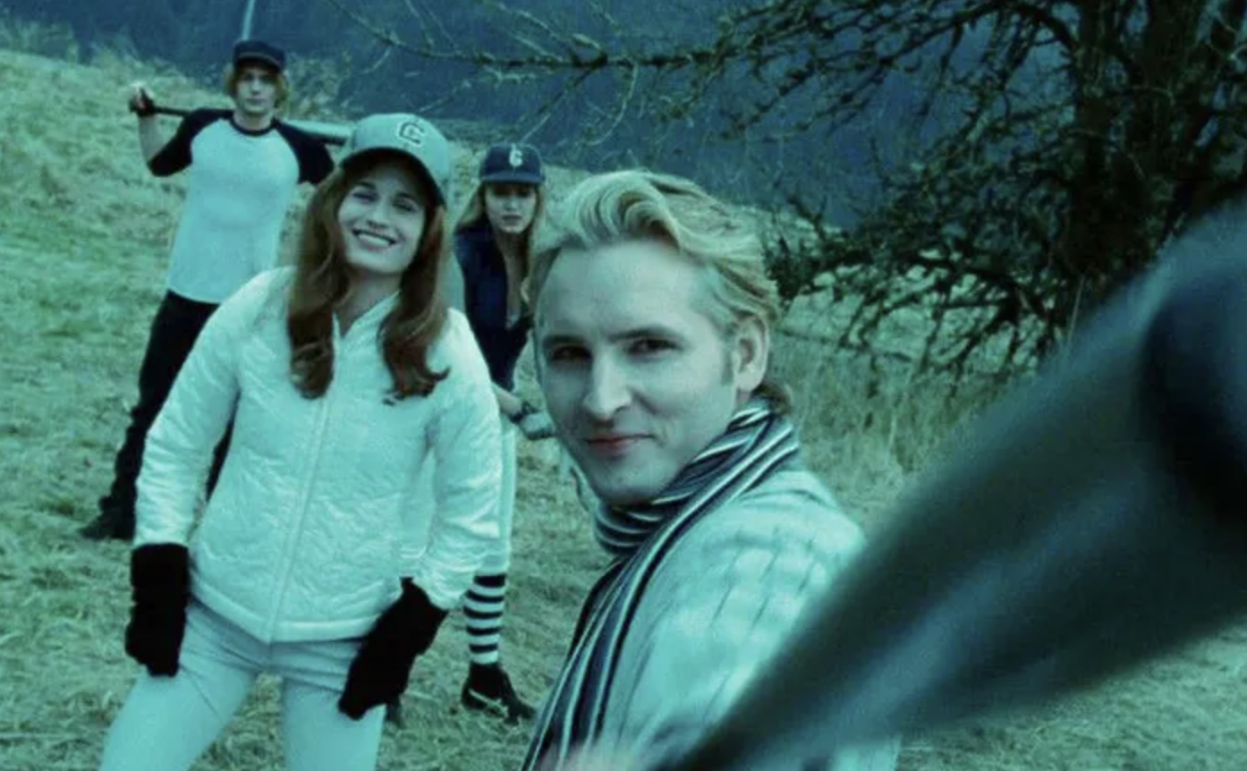 Furthermore, the blue filter on the first film disappears because said film’s creation was experimental, alive, allowing for suspension of disbelief as improvisational theater does. As visuals evolve and castings are switched in the middle of the series, one begins to realize that Twilight doesn’t even care about Twilight, either.
